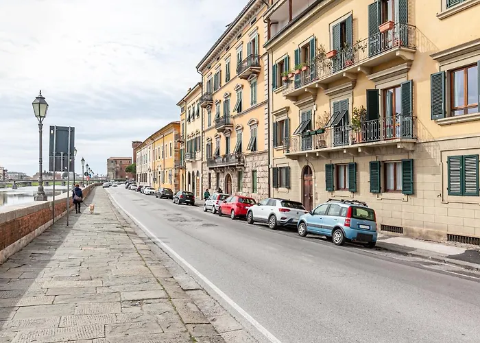 Guesthost - Lungarno Elegant Apartment With Panoramic Balcony 피사는 산 조반니 세례당에서 1.1km 떨어져 있습니다. 이 숙소에는 2개의 침실, 2개의 욕실과 부엌이 있습니다.